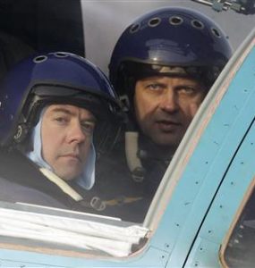 German Chancellor Angela Merkel becomes the first head of state since the election to formally meet both Putin and Medvedev.